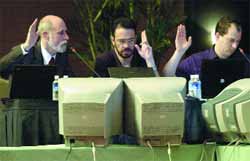 К голове каждого участника концерта прикрепили датчики, подключенные к энцефалографу (кроме того, регистрировалось сердцебиение). Полученные данные преобразовывались в цифровой вид и передавались на компьютер, где программа, написанная самим Фунгом, объединяла разрозненные колебания и синтезировала на их основе звуковое полотно. При необходимости в композицию добавляли ритм — учитывая пульс человека. Результирующая мелодия сильно зависит от состояния «композитора»: человек, чувствующий себя счастливым, «издает» характерное жужжание, проявляющий интерес — нечто наподобие мурлыканья и т. п. В общем и целом спокойный человек «звучит» более красиво. Концерт включал как воспроизведение мелодий отдельных участников, так и интегральной музыки, получаемой при усреднении мозговой активности всех слушателей (при этом была сделана попытка «настроить мозги» для игры в унисон). Согласно комментариям участников, «внутренняя» музыка не лишена изящества и привлекательности, но все же весьма непривычна. — Е.З. Спам спамом погоняет… Министерство торговли и промышленности Великобритании в конце марта провело ряд заседаний, посвященных борьбе с различными видами спама. Английские законодатели намерены позаботиться о защите от непрошеной рекламной корреспонденции не только электронных почтовых ящиков граждан, но и сотовых телефонов. После стадии публичных консультаций, которая завершится 19 июня, правительство перейдет к обсуждениям законопроектов, а в силу антиспамовое законодательство должно вступить до 31 октября. Пока Туманный Альбион лишь вступает на тропу войны со спамом, в США двадцать шесть штатов уже обзавелись собственной нормативно-правовой базой, позволяющей привлекать спамеров к ответственности в судебном порядке. В конце марта этот список пополнился Калифорнией, где был принят билль, предусматривающий штраф до 500 долларов за каждое дошедшее до адресата непрошеное сообщение. Однако введение новых законов вряд ли повлияет на объемы спам-трафика. Большая часть спамеров использует средства, затрудняющие, а зачастую делающие просто невозможным, их поиск. По данным мониторинга известной антиспамовой компании Brightmail, больше 42% всей почты, направляемой в 250 млн. почтовых ящиков, составляют непрошеные послания. По прогнозам компании, к лету уже половину e-mail-трафика будет обеспечивать спам… — Т.Б. Намылили шею Впервые в истории мобильной связи японскому оператору NTT DoCoMo удалось отсудить деньги у мелкой Интернет-компании, занимавшейся рассылкой непрошеной рекламной корреспонденции владельцам сотовых телефонов. Подписчики сервиса i-mode, которым все блага Интернета (в том числе спам) доступны с помощью мобильных телефонов, попали под массовую рассылку предприимчивых дельцов. Спамеры не стали утруждать себя сбором адресов, а вместо этого сгенерировали миллионы случайных адресных комбинаций и разослали на них свои рекламные объявления. В результате четыре миллиона посланий, отправленных в сеть NTT DoCoMo, не нашли своего адресата. Самое любопытное, что именно недоставленные письма дали возможность наказать компанию-спамера: по утверждению сотового оператора, на обработку каждого письма, которое не находит получателя, тратится в среднем 1,2 йены. Исходя из этой цифры суд и назначил компенсацию в размере 6,6 млн. йен (54 тыс. д