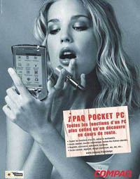 Французский рекламный модуль iPAQ с девушкой, которая подкрашивает губы, используя КПК как зеркальце, был с негодованием признан американскими феминистками «постыдным» и сексистским. Ополчилась на рекламу американская феминистская организация GraceNet, в которой состоит около тысячи женщин занятых в IT-бизнесе. На счету у GraceNet уже есть несколько побед в аналогичных ситуациях, когда крупным компаниям (в том числе IBM и InfoUSA) приходилось отказываться от «неподобающей» рекламы.