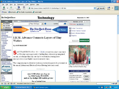 Все чего-то стоит Хочу затронуть тему, о которой и вовсе не говорят, - о сайтах с платным и частично платным контентом. Именно на них сосредоточены те ресурсы, которые составляют ядро информации, накапливаемой нашей цивилизацией. Спор о том, должна ли информация (и программы в том числе) быть платной или бесплатной, по-видимому, рассудила сама действительность: информация имеет стоимость, а потому и цену. Несмотря на популистскую привлекательность позиции сторонников свободного софта и свободных данных, все их затеи выглядят приемлемо только при наличии подпитывающих источников. Искусство может быть свободным, только если есть спрос на него. Это не размышления об экономическом мироустройстве, напротив - это тезис мироустройства космического: всякий разум, формирующий из мнимого хаоса вселенной прикладные структуры, неизбежно поглощает энергию из окружающей среды. Впервые столкнувшись с сайтом New York Times (см. скриншот на этой странице) в 1996 году, я ничего не понял, да и не смог бы тогда понять. Как впоследствии оказалось, от меня требовалась лишь формальная регистрация. Именно она является необходимым шагом для доступа к массе великолепных сайтов с великолепным содержанием.