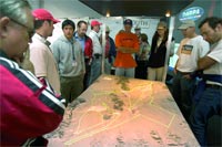 Спартанские правила соревнований за это время не изменились, разве что дистанция пробега укоротилась на 30 км. Как и в прошлом году, роботизированным автомобилям предстояло за десять часов самостоятельно одолеть заранее неизвестный маршрут, полагаясь на показания своих электронных "органов чувств" - батареи сканеров и системы GPS. Наряду с полотном грунтовых дорог "железным коням" встречалось и бездорожье - их путь пролегал через песчаные участки и залитые водой низины. Нитью Ариадны служил выдаваемый перед стартом текстовый файл, хранящий географические координаты одиннадцати контрольных точек маршрута, максимально допустимое отклонение от соединяющей их прямой, а также лимит скорости на каждом из участков. Роль "гаишников в кустах" прилежно исполняли рассредоточенные по дистанции члены оргкомитета, вместо полосатых жезлов вооружившиеся контрольными радиопультами, приемники сигналов которых были вмонтированы в начинку каждой из машин. В компетенцию "судей на линии" входила дисквалификация попавших в аварию и нарушивших правила участников, а также борьба с "неспортивным поведением" - намеренным нанесением ущерба соперникам недобросовестными ботами.