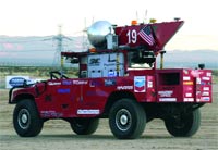 Этот бот, собранный на базе армейского джипа Hummer 1999 года выпуска, появился на свет специально для участия в нынешней гонке. В его арсенале - семь лазерных сканеров и специальный бортовой компьютер от компании Caterpillar. За зрительное восприятие отвечает батарея лазеров и видеокамер на вращающейся в трех плоскостях платформе, установленной на крыше кабины. Сигналы с приборов поступают на систему из семи процессоров Pentium M, оперативно управляющую 6,5-литровым дизельным сердцем машины. Подобно собрату, этот бот выкрашен красным - в дань уважения неистовому лидеру команды, получившему прозвище за пристрастие красить свою шевелюру в огненно-рыжий цвет.
