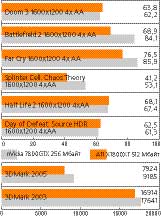 Как видим, графические ускорители одного вроде бы семейства радикальнейшим образом отличаются друг от друга. Особенно выделяется R520 (Radeon X1800) - он просто наголову превосходит ближайшего "конкурента" новой линейки, словно это два абсолютно разных процессора! Вот она, гибкость новой архитектуры: как захотели - так и сделали. И сверхнавороченный, и скромный процессор - на основе одних и тех же подходов. Впечатляют и тактовые частоты, не опускающиеся ниже 450 МГц у ядра (у GeForce 7800 GTX, для сравнения, "всего" 430 МГц, пусть и гораздо более "полновесных", чем мегагерцы какого-нибудь X1600 XT), и оперативной памяти (1,4–1,5 ГГц - не шутки!). Правда, доступно все это великолепие будет далеко не сразу - с "высокочастотными" карточками придется подождать до ноября-декабря (да и X1800 XL на момент написания статьи в московской рознице еще не встречалась). Однако стараниями нашего замечательного редактора Х, в неравном бою отбившего нам на тестирование топовую карточку нового семейства Radeon X1800 XT, краткое "превью" новой быстродействия архитектуры мы можем сделать уже сейчас.